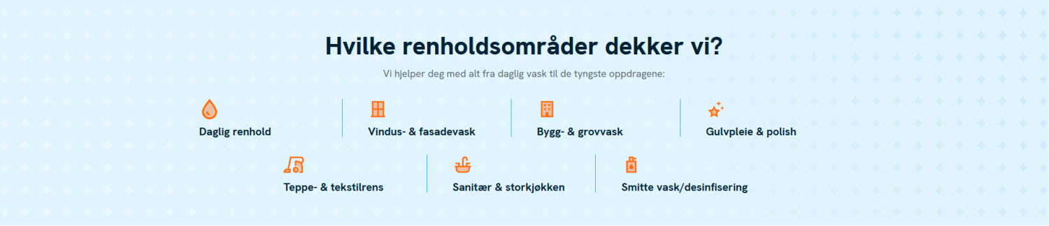 Vår faglige tilnærming bygger på tre pilarer: Trygghet, kunnskap og utstyr. Vi fokuserer på å levere komplette metoder som sikrer plettfrie resultater, enten det gjelder daglig renhold, krevende byggvask eller spesialisert gulvpleie.